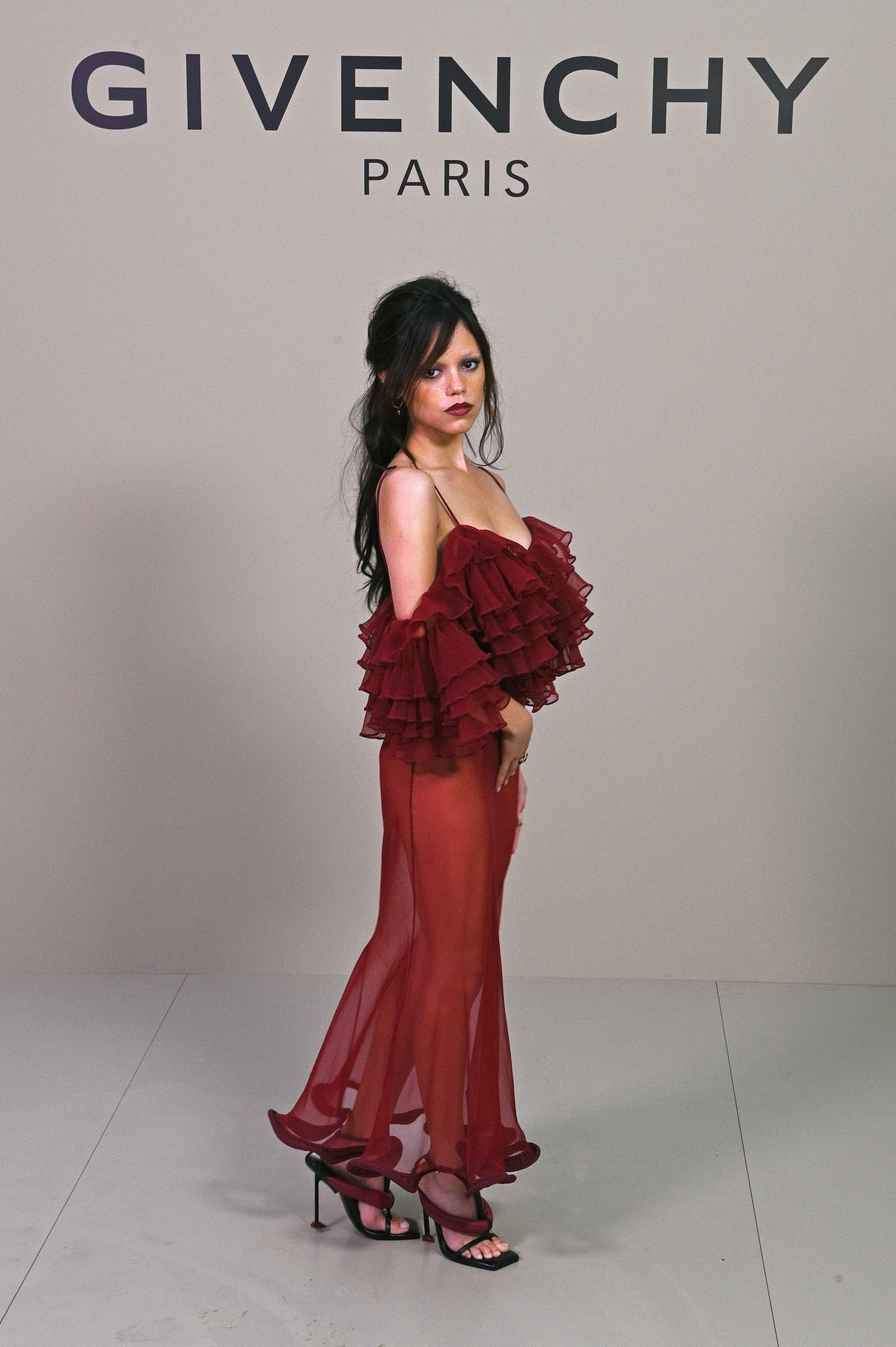 PARIS, FRANCE - OCTOBER 03: Jenna Ortega attends the Givenchy show during Paris Fashion Week Womenswear Spring/Summer 2026 on October 3, 2025 in Paris, France. (Photo by Dave Benett/Getty Images)
