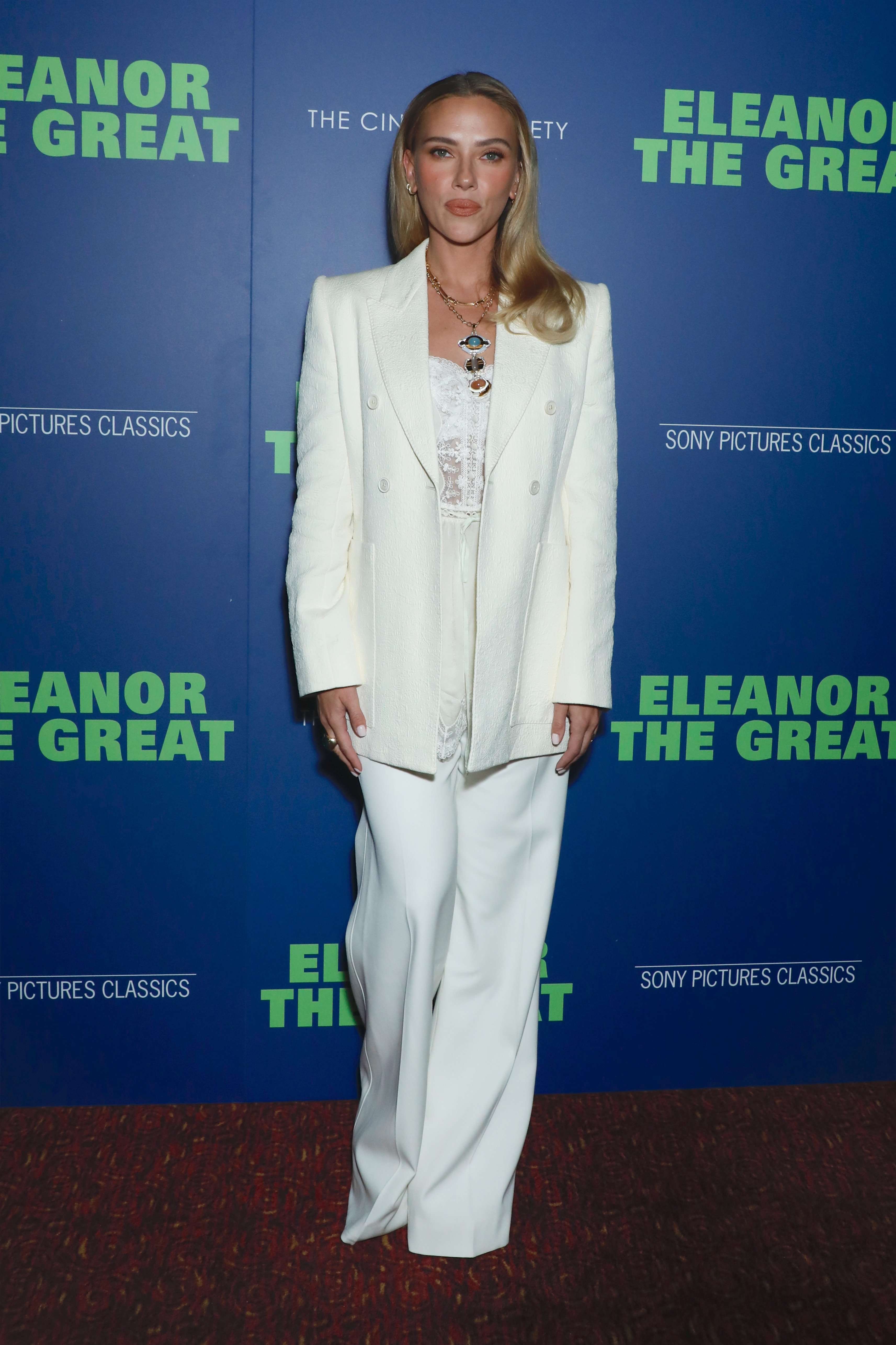 Mandatory Credit: Photo by Gregory Pace/Shutterstock (15501784ag)Scarlett Johansson, wearing a Chloe suitSony Pictures Classics' 'Eleanor the Great' The Cinema Society Screening, New York, USA - 24 Sep 2025/shutterstock_editorial_EleanorScreening_15501784ag//2509250356